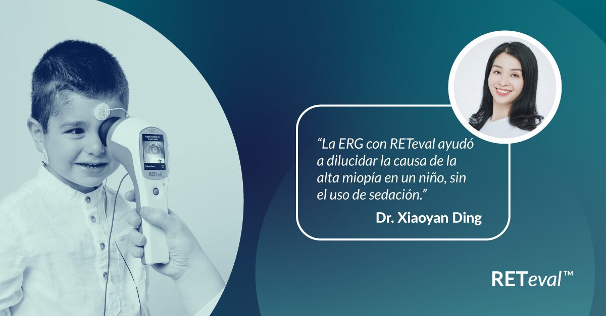 Los hallazgos del ERG nos permitieron asesorar a la familia sobre las pruebas genéticas y aconsejarles que asistieran a la atención de baja visión y a las evaluaciones oftalmológicas periódicas. En ausencia de un diagnóstico correcto, es probable que este niño no reciba la atención necesaria, lo que podría conducir a más desafíos clínicos, así como a dificultades en la escuela. La ERG con RETeval ayudó a dilucidar la causa de la alta miopía en un niño, sin el uso de sedación.