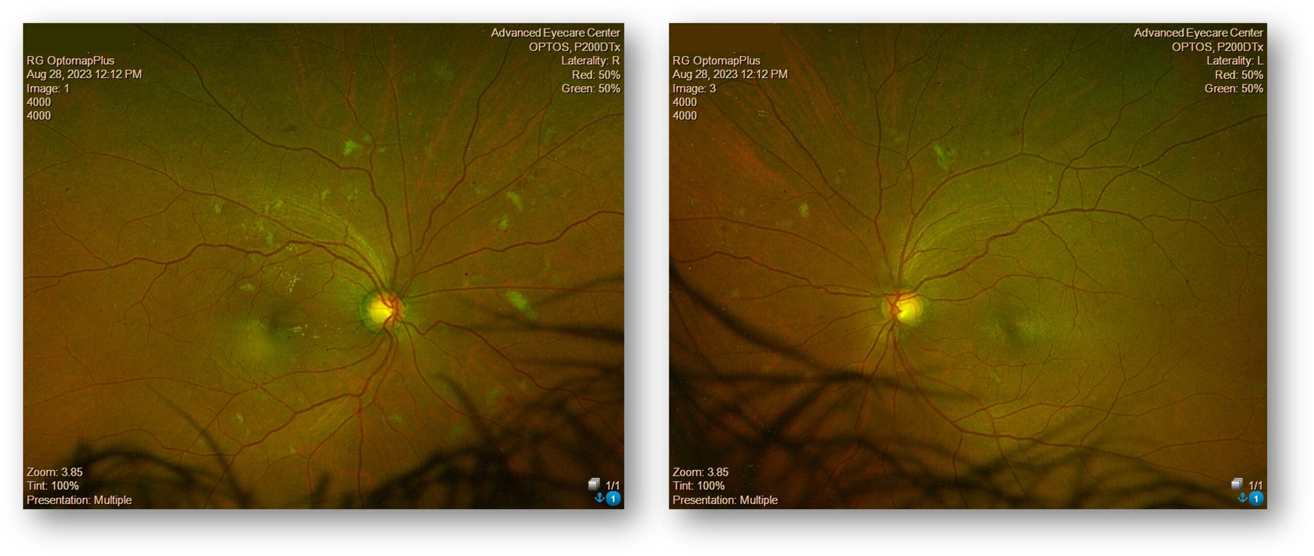 The patient did not return until August 2023. At that visit, he reported discontinuing metformin due to side effects, during which time his A1C rose to 12.0. His physician restarted metformin and initiated semaglutide injections. The patient proudly reported that his A1C had improved to 6.0 and that he had lost a significant amount of weight. He stated that he felt well and believed his retinopathy had resolved.