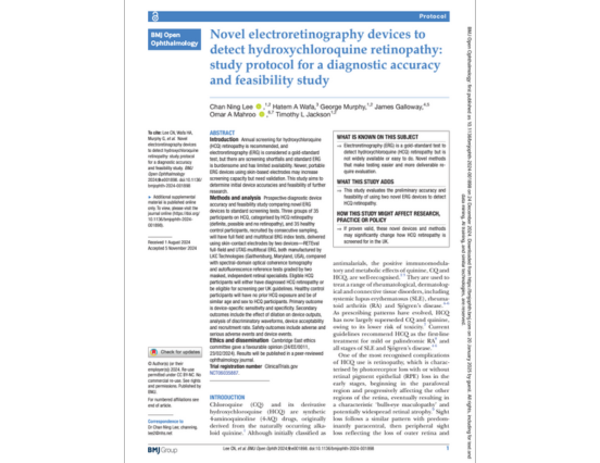 Kumar A, Sanchez N, Kong AW, Arnold BF, Ou Y. Diagnostic Performance of a Handheld Electroretinography Test for Glaucoma. Published online January 2025.