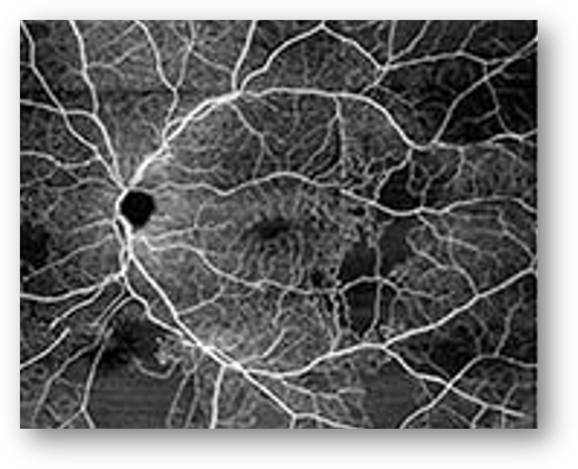 Despite the minimal NPDR depicted in the fundus photos and a normal OCT, we ran an OCT-A on the patient and found reason for concern in the left eye. Here, we noted significant patchy areas of non-perfusion and an irregular foveal avascular zone (Figure 3). That said, there was no evidence of intraretinal microvascular abnormalities (IRMA) or proliferative diabetic retinopathy (PDR). In cases like this, we want to learn as much as we can about the patient’s risk and therefore ran a baseline ERG next.