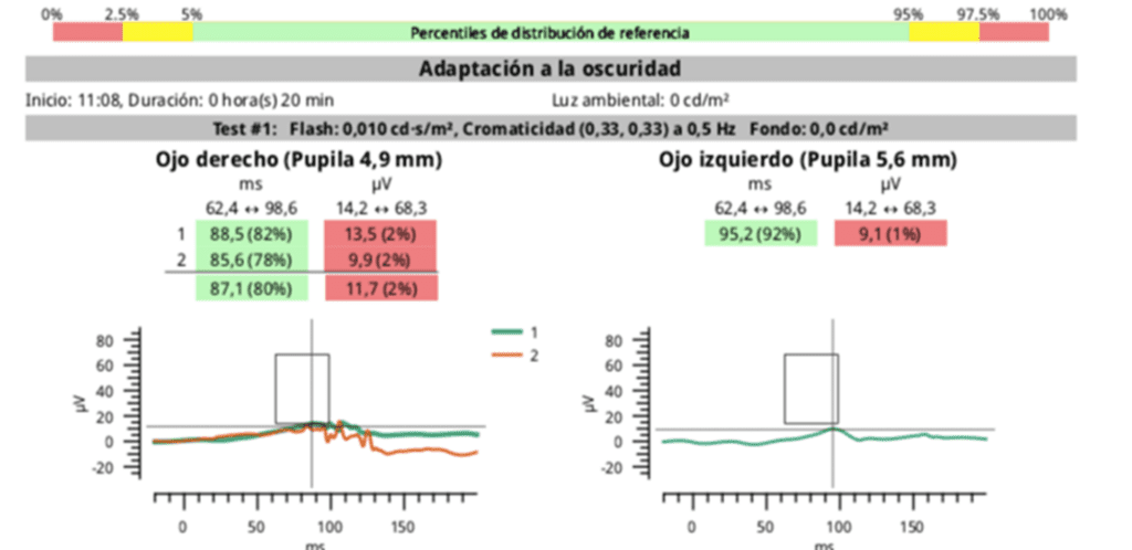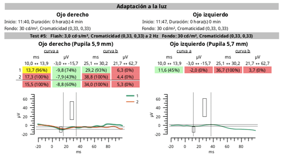 Both the light and the dark-adapted ERG showed significant abnormalities. This guided us to the conclusion that the patient has inherited retinal disease and we sent him for further genetic testing.