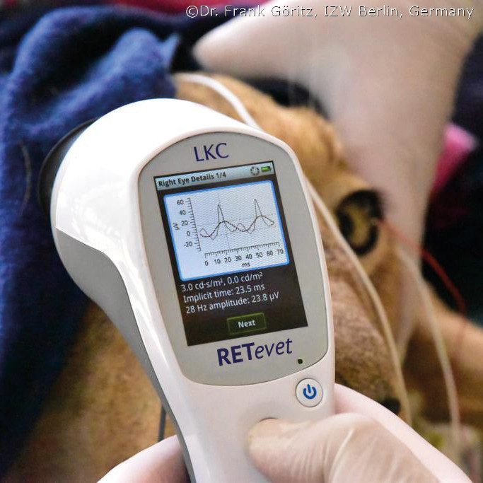 ERG is used to assess retinal function in animals and is an extremely valuable diagnostic tool for veterinary ophthalmologists and researchers. ERG testing is indispensable before cataract surgery to rule out retinal degenerations and the RETevet is an invaluable tool for diagnosing various inherited and acquired retinal diseases — especially when ophthalmoscopic abnormalities are not present.